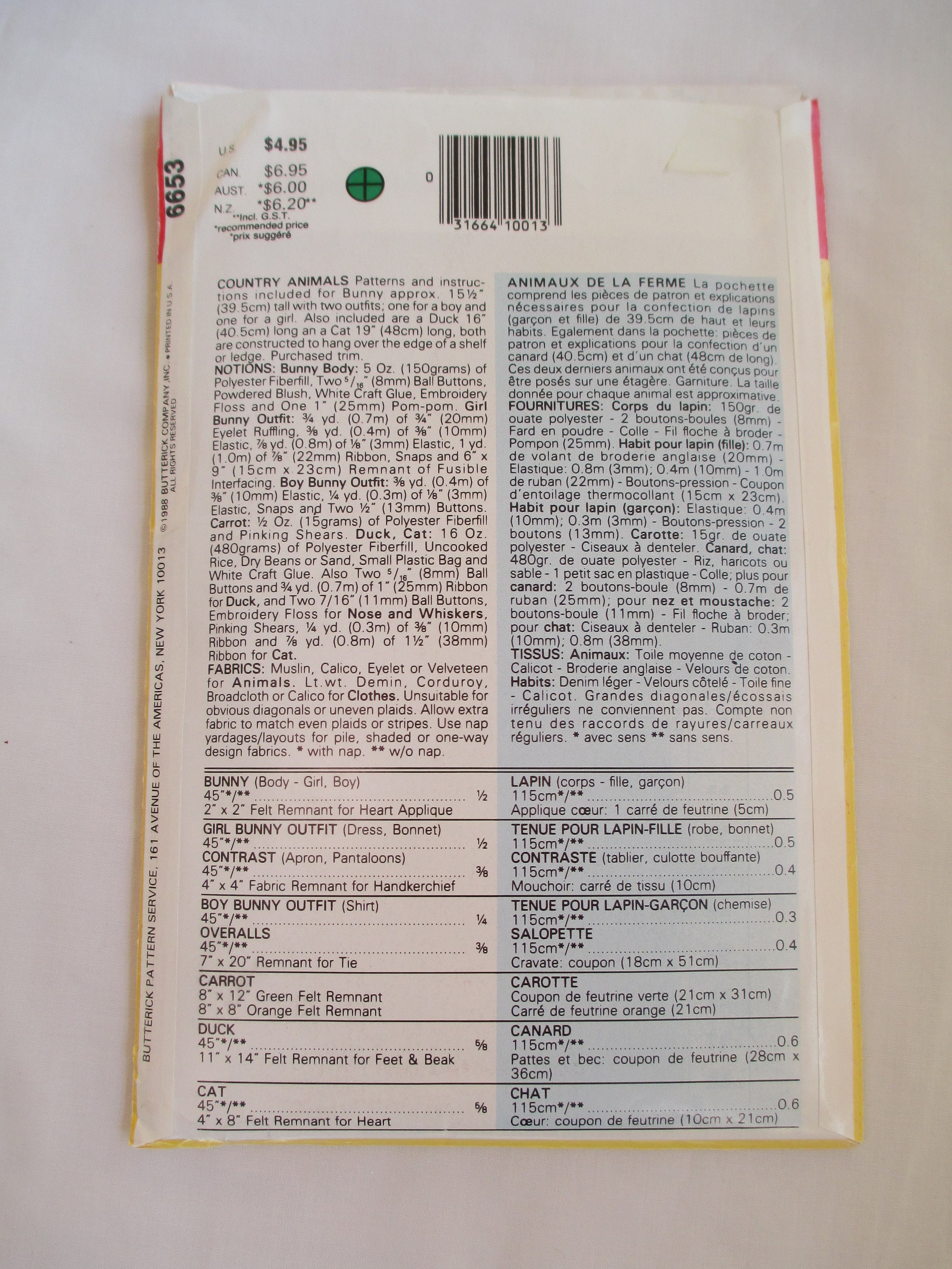 Butterick 6653 Country Animals Pattern Uncut Sewing Pattern Etsy